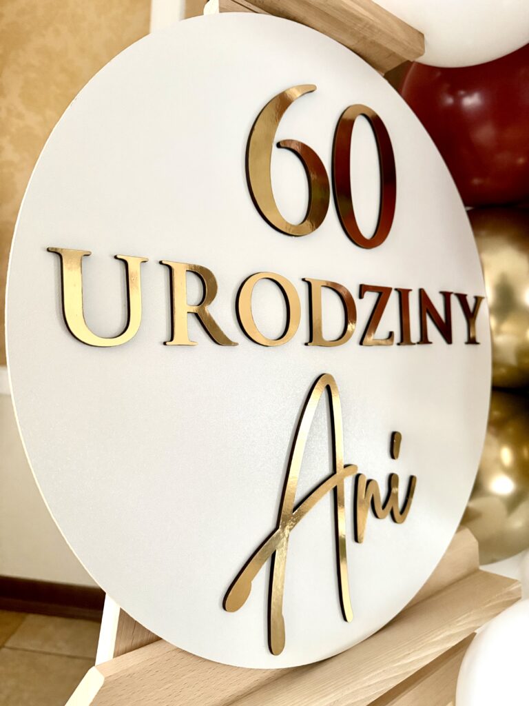 - personalizowana tabliczka na sztaludze z imieniem i okazją